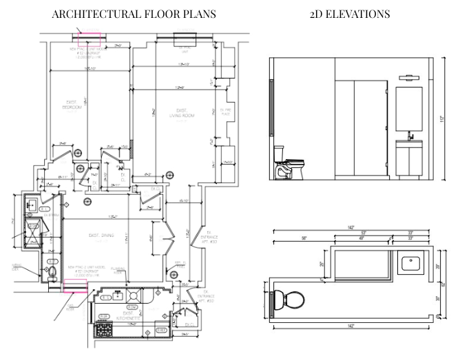• Kitchen and bathroom plan that mark plumbing, appliances, fixtures cuts sheet and any proposed ventilation