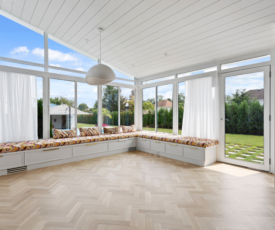Architectural details were equally prioritized. You will find custom millwork throughout the home, including a bespoke built-in banquette that blends style with usability.