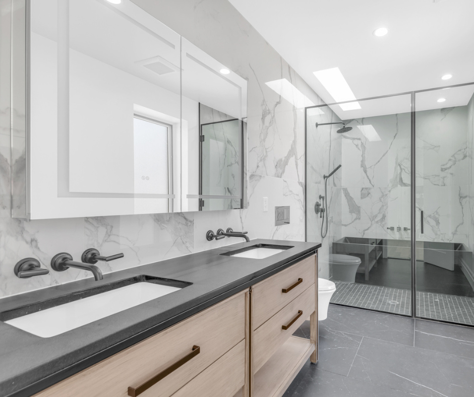 High‑performance waterproofing, stone and tile installations, curbless showers, soaking tubs, and heated floors.