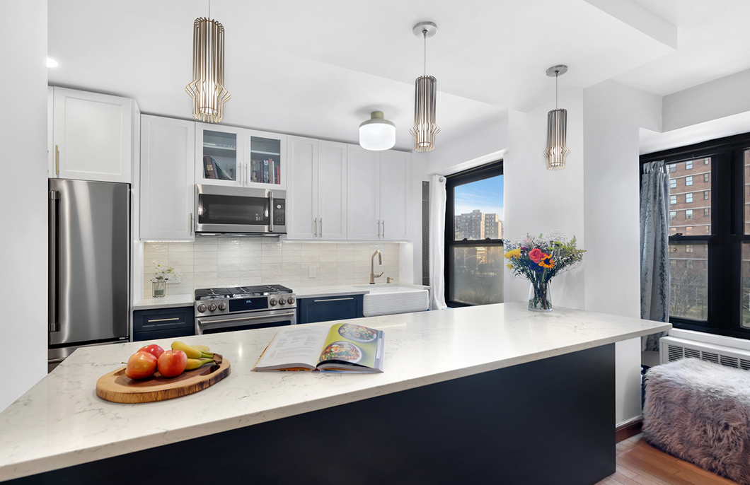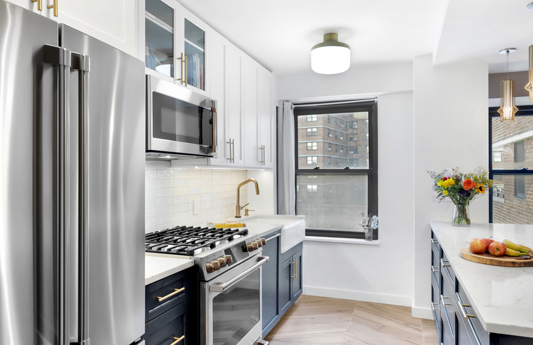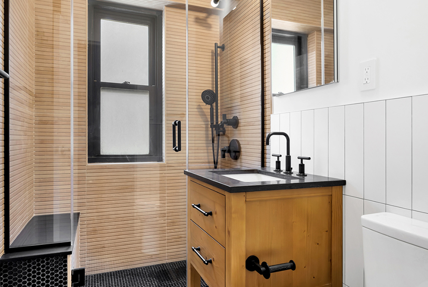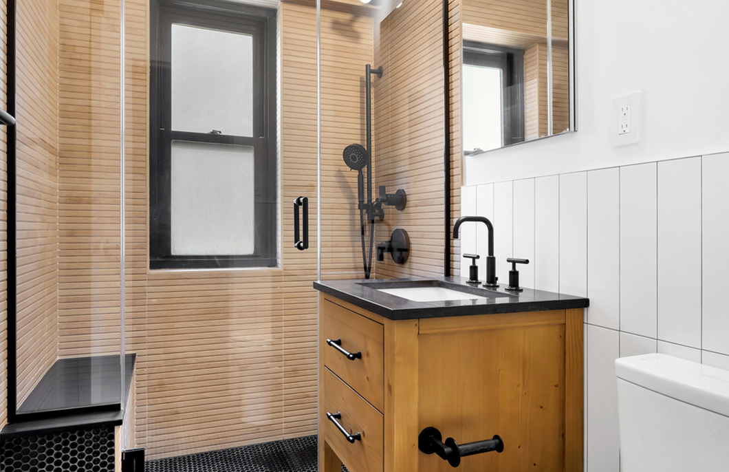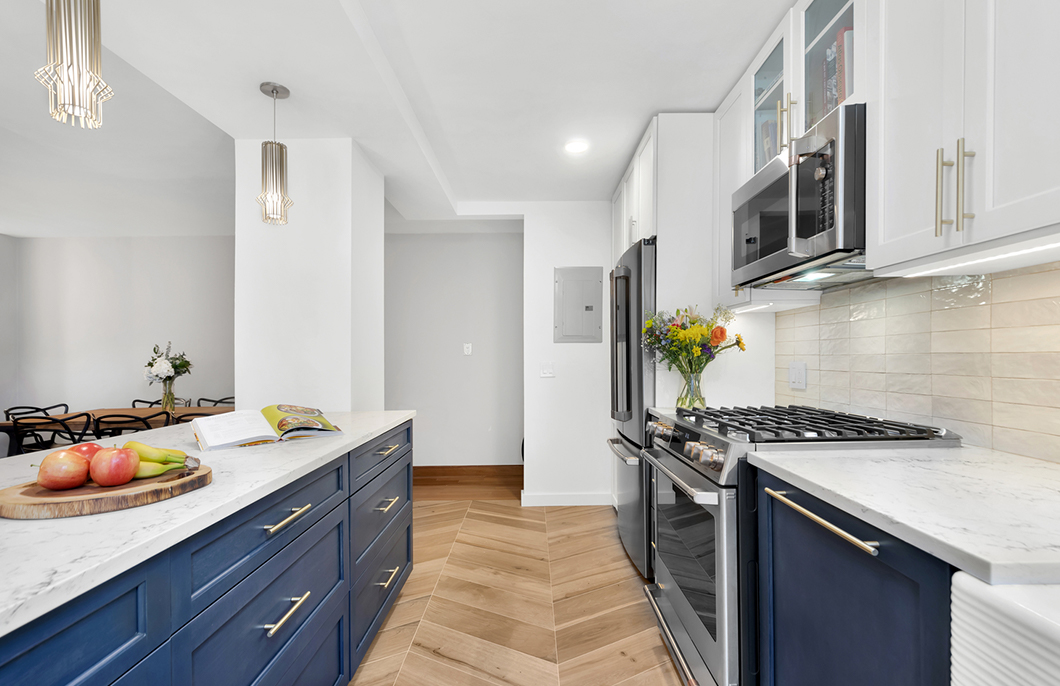 This Lower East Side NYC renovation is a grand example of how thoughtful design and expert craftsmanship can completely redefine compact urban living. With careful planning and a blend of timeless materials and modern finishes, the transformation of both the bathroom and kitchen brings a sense of elegance, comfort, and everyday luxury to this stylish downtown home. In the bathroom, the renovation embraces transitional style, achieving a delicate balance between traditional charm and contemporary appeal. A wainscoting-inspired tile design in the shower area creates visual texture and a subtle architectural nod to classic detailing. This is paired with a modern stacked layout of crisp white subway wall tiles, producing a fresh, clean, and airy backdrop. The glossy black penny round tile flooring adds rich contrast and a hint of vintage glamour—tying in perfectly with the black matte plumbing fixtures and accessories throughout the space. The custom shower accent wall, designed to echo the warm wood tones of the floating vanity, brings cohesion and depth to the bathroom. This thoughtful design element connects function with aesthetics and helps establish a warm, calming palette. It’s these layered, intentional details that give the bathroom its grand feel—despite the modest square footage typical of Lower East Side homes. Functionality was just as important as visual appeal in this renovation. Storage and layout were optimized without sacrificing design, resulting in a space that feels open and uncluttered. Whether it's getting ready in the morning or unwinding at night, the new bathroom provides a grand user experience in every sense—comfort, style, and efficiency. The kitchen renovation continues the theme of understated luxury with a beautifully designed space that blends sophistication and practicality. The two-tone cabinetry—deep blue base cabinets paired with classic white uppers—offers timeless visual contrast while enhancing the sense of depth in the room. These custom SRNY shaker cabinets provide ample storage while adding a tailored, elegant aesthetic that feels both grounded and grand. Quartz countertops line the kitchen workspaces, offering a durable surface that’s as functional as it is refined. These counters also help frame the space, pulling together the cabinetry and backsplash. Speaking of backsplashes, a glossy white subway tile from TileBar was chosen for its reflective qualities and clean design. This surface catches the light beautifully, opening up the kitchen and giving it an inviting brightness throughout the day. High-performance Café stainless steel appliances blend seamlessly into the layout, lending a sleek and professional feel to the space. These appliances were selected not only for their look but also for their superior performance—ideal for an NYC kitchen that needs to work hard without sacrificing design. Polished brass hardware was chosen to punctuate the cabinetry with a pop of warmth and luxury, delivering that final grand touch. Every finish, fixture, and layout decision in this renovation was guided by the desire to create a space that feels grand in experience, even within a smaller New York City footprint. From the elegant tilework in the bathroom to the stylish kitchen palette and premium material selection, this renovation exemplifies how well-considered design can deliver a sense of timelessness and sophistication. Whether you're looking for inspiration or evaluating your own renovation goals, this Lower East Side transformation proves that a grand, beautiful result is always possible with the right vision, team, and attention to detail.